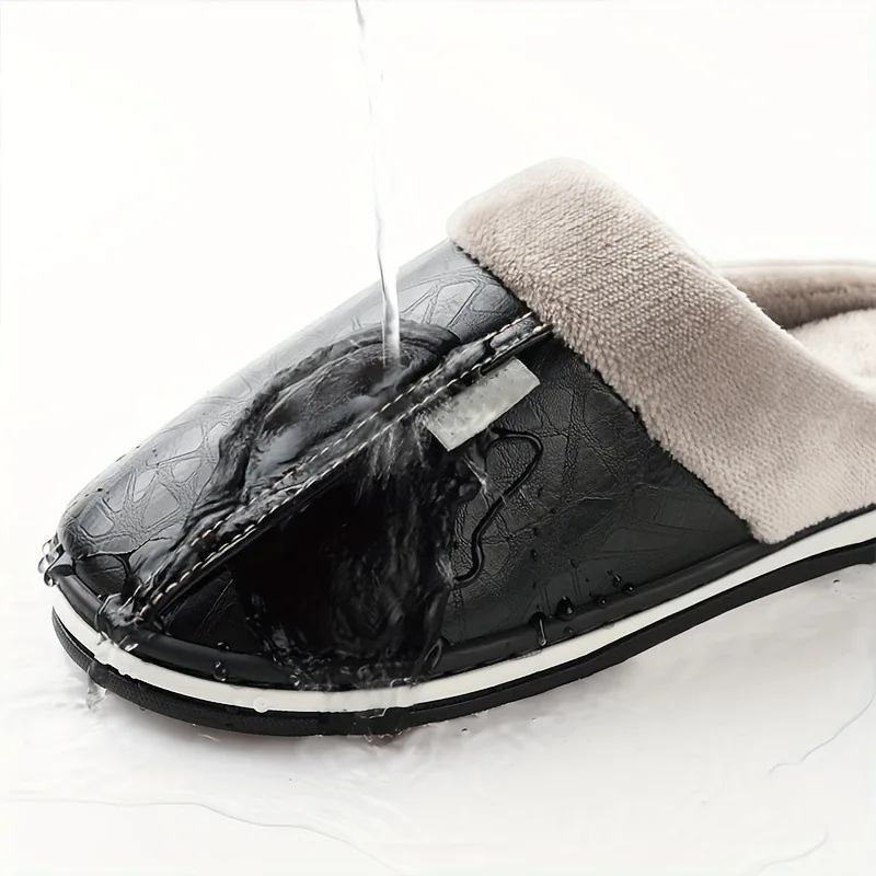 These PU leather slippers feature a warm, anti-skid TPR bottom and plush lining, ensuring comfort and safety indoors. Waterproof and breathable, they are perfect for winter use in homes, offices, or kitchens. Available in multiple colors and sizes, these versatile slippers suit both men and women.